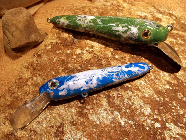 Old Fart Creations Custom Fishing Plugs are created in my workshop using various select Balsa, Bamboo, Cedar, Cypress and Oak wood. They are designed by me and hand turned or carved into beautiful works of art that catch the fisherman’s eye well before they catch fish. Many are show pieces to be presented on a desktop or mantel.